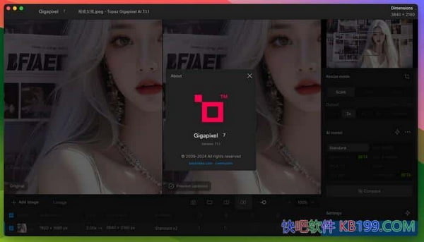 Topaz Gigapixel AI 是一款专为Mac设计的图像放大和增强软件。以下是关于Topaz Gigapixel AI的一些主要特点:强大的图像放大功能:Topaz Gigapixel AI 利用先进的人工智能技术,可以将低分辨率的图像放大到高分辨率的水平,而不会丢失细节或产生模糊。它可以识别和处理图像中的细节,使放大后的图像看起来更加真实、清晰和自然。多种图像格式支持:该软件支持多种常见的图像格式,如JPEG、PNG、TIFF等,用户可以根据需要选择合适的图像格式进行放大和增强。批量处理功能:Topaz Gigapixel AI 支持批量处理,用户可以一次性处理多个图像,从而提高工作效率。自动识别和处理:该软件可以自动识别图像的分辨率和质量,并根据实际情况进行相应的处理。它采用了先进的人工智能算法,可以智能地分析和处理图像,从而大大简化了图像处理的工作流程。高质量输出:经过Topaz Gigapixel AI处理的图像,不仅分辨率得到提升,而且图像质量也得到了显著改善。它能够恢复和增强图像的细节,减少噪点和伪影,使图像更加清晰、锐利和自然。总的来说,Topaz Gigapixel AI 是一款非常实用的图像放大和增强软件,它利用先进的人工智能技术,可以将低分辨率的图像放大到高分辨率的水平,同时保持图像的真实性和清晰度。对于需要进行图像放大和增强的Mac用户来说,它是一个非常不错的选择。