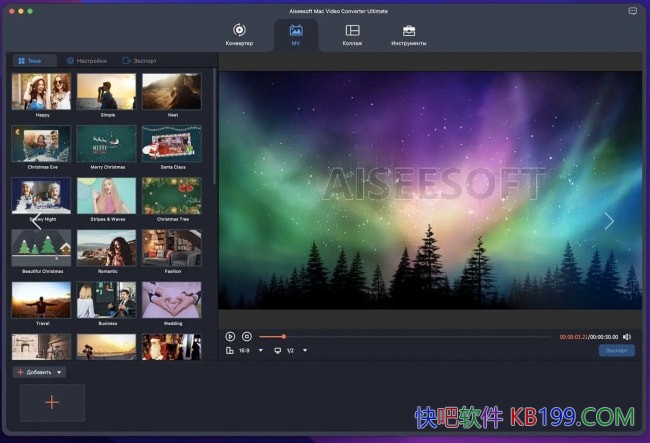 想将您的常规视频变成引人注目的电影吗?Aiseesoft Mac Video Converter Ultimate 是制作精彩社交媒体电影的最佳工具。数十个免费主题可帮助您自定义素材并制作专业品质的电影。您还可以裁剪、旋转、应用效果、添加自己的徽标以及为电影添加字幕。您还可以添加自己喜欢的音乐来制作令人印象深刻的电影。