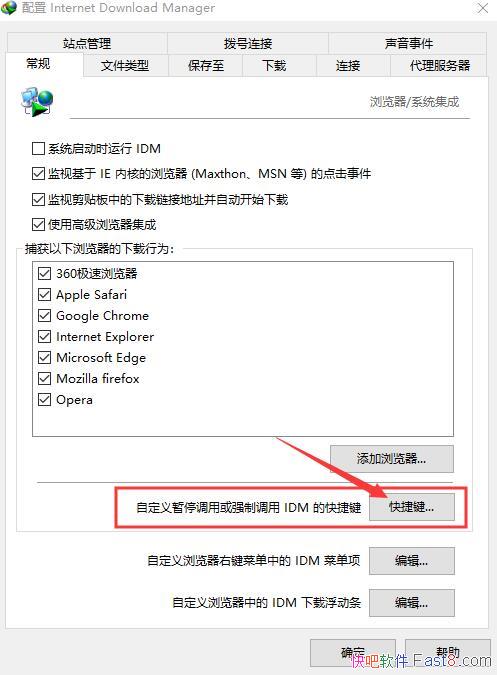 第三步:设置强制使用IDM下载快捷键,实现下载任何链接强制使用IDM,如下图:点击设置快捷键。 |
