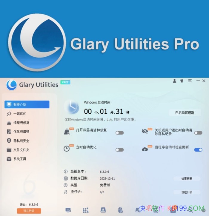 Glary Utilities是系统清理与优化工具,能够修理、加速、增强和保护你的PC机。它能清理系统垃圾文件,无效的注册表键值,上网记录等。也可以管理和删除IE插件,分析磁盘空间使用情况,