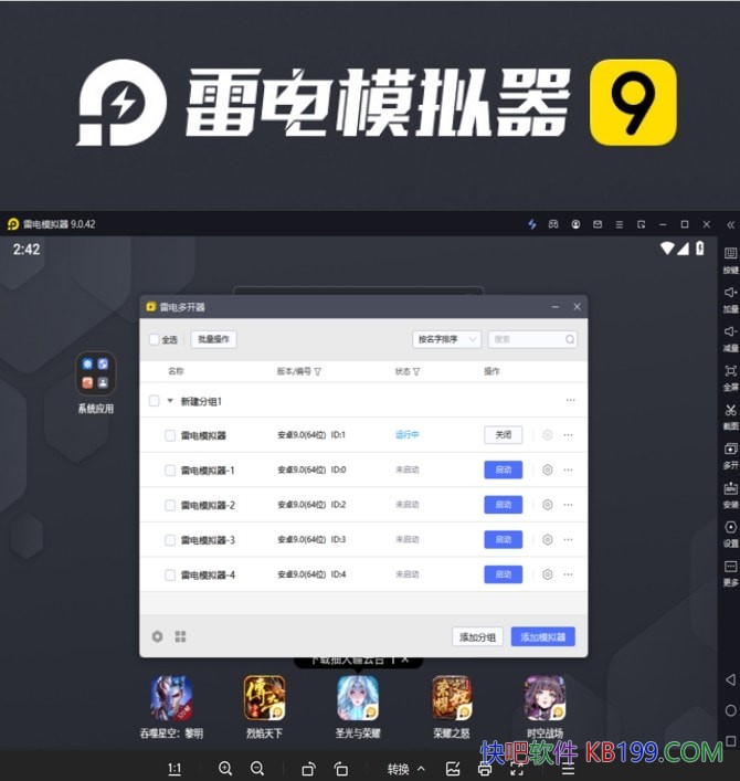 玩电脑手游模拟器安卓版首选雷电模拟器9.0最新版采用Android 9版本内核.雷电安卓模拟器最新版,支持OpenGL3.1模式3D渲染,游戏稳定多开无压力,提供谷歌安装器,一键宏按键,脚本录制,多开