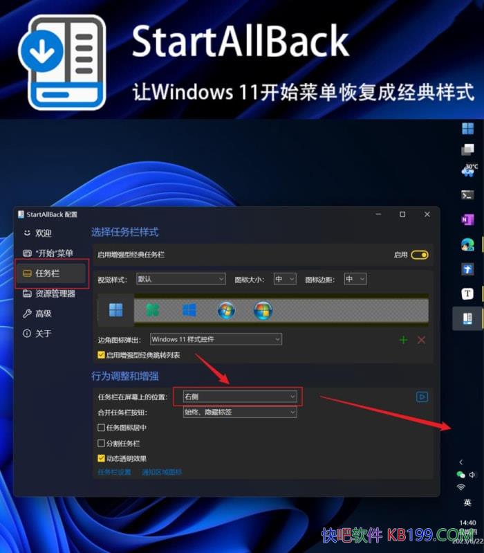 StartAllBack是一款用于windows11的开始菜单增强工具,使用可为用户提供在windows11任务栏上恢复经典的主题风格开始菜单,改进开始菜单样式,对任务栏、资源管理器等进行个性化调整,
