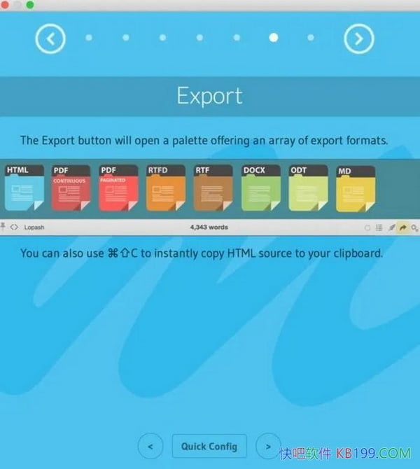 快吧软件软件分享的Marked Mac破解软件提供了许多有用的功能,例如实时预览、自定义样式、语法高亮、表格预览等等。用户只需在左侧编辑器中编写Markdown文档,右侧即可实时预览效果,使得文档编辑变得更加高效。
