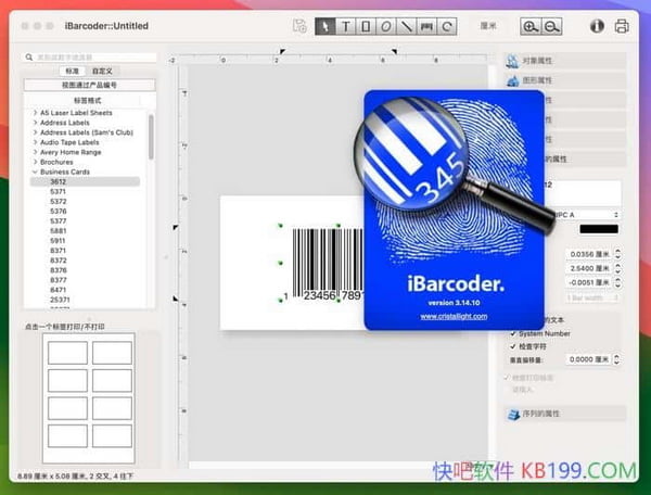 iBarcoder for Mac是一款功能强大的条形码生成软件,专为Mac用户设计。它提供了直观易用的界面,使用户能够轻松创建和打印各种类型的条形码和标签,如QR码、EAN、ISBN和UPC等。同时,它支持多种颜色和字体的选择,允许用户根据自己的喜好和设计需求进行个性化设置。在iBarcoder中,用户可以方便地创建专业的条形码标签,并具备实时条形码预览功能。此外,用户还可以更改给定条形码符号系统固有的类型、大小和其他属性,以修改生成的条形码。软件还允许用户旋转生成的条形码图像,并提供标签布局预览功能。特别值得一提的是,iBarcoder for Mac支持将条形码直接打印到打印机,同时用户也可以创建并保存自己的自定义标签格式。条形码可以导出为高分辨率的图像文件或矢量图形,如PDF、EPS、BMP、TIFF、JPEG、PNG等。此外,用户还可以在标签中添加各种对象和设计元素,如文本框、图像框、矩形、椭圆和线条,以满足不同的设计需求。除了上述功能外,iBarcoder for Mac还具备强大的序列号功能,允许用户定义打印或导出条形码或文本对象的顺序,满足目录和零售业务的特定需求。总的来说,iBarcoder for Mac是一款功能全面、操作简便的条形码生成软件,无论是零售、物流还是其他需要条形码的领域,它都能提供强大的支持。