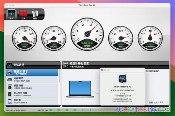 TechTool Pro for Mac是一款专为Mac用户设计的强大系统维护和故障排除工具。它凭借全面的功能、高效的性能以及友好的操作界面,赢得了广大用户的信赖和好评。TechTool Pro能够全面检测和修复Mac系统中的各种问题,包括文件系统错误、内存问题、启动故障、网络连接问题等。其强大的磁盘诊断功能可以深入检查磁盘的完整性和健康状况,及时修复磁盘上的错误和问题,保障系统的稳定运行。此外,它还可以进行内存诊断,检测和清除内存中的错误和问题,提高系统的性能和稳定性。除了诊断和修复功能,TechTool Pro还提供了全面的系统维护工具,包括磁盘清理、系统优化、隐私保护等。用户可以通过这些工具清理不需要的文件、删除隐私数据、优化系统设置等,从而保持系统的清洁和高效运行。TechTool Pro的界面简洁直观,易于使用。它支持自动诊断和修复功能,能够快速检测和解决系统问题。同时,TechTool Pro还具备强大的网络诊断功能,可以检测和修复网络连接问题,帮助用户诊断网络连接故障、检测网络速度和稳定性。