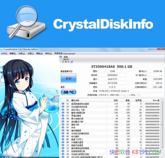一个完全免费的硬盘健康监测工具小软件,它通过读取S.M.A.R.T了解硬盘健康状况.硬盘里的数据至关重要,因此时常检查硬盘健康状况是有必要的。打开它,您就可以迅速读到本机硬盘的详细信息,包括接口、转速、温度、使用时间等.软件还会根据S.M.A.R.T的评分做出评估,当硬盘快要损坏时还会发出警报,支持包括简体中文、繁体中文在内的多种语言!