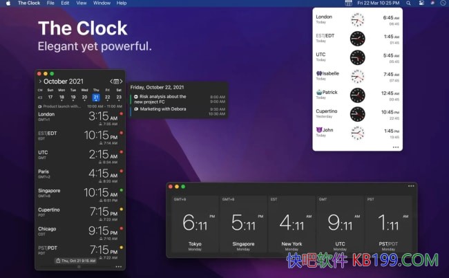 The Clock For Mac v4.9.7 高级世界时钟工具中文版/快速查看日历