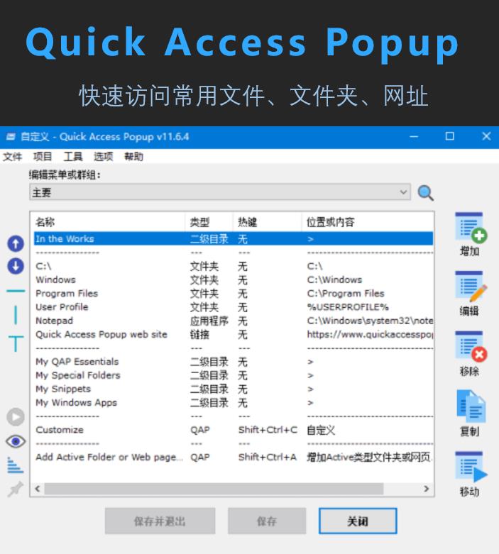 Quick Access Popup v11.6.6 多语便携版/可帮助用户快速访问常用文件文件夹网址