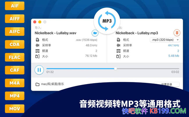 普遍适用的音频工具——MP3格式转换器。只需单击把任何音频文件转换为MP3格式。