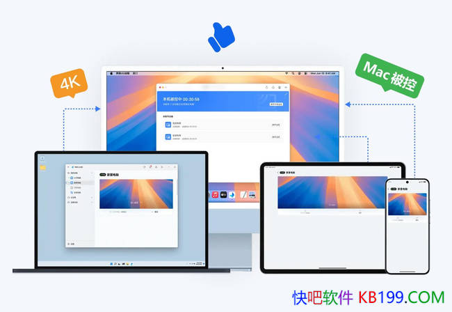 Mac 深度适配:解决传统工具控制 Mac 的 “键盘失灵、快捷键错乱” 问题,Windows 控制 Mac 时 “Ctrl+C/V” 自动映射为 “Command+C/V”,手机控制 Mac 还支持三指拖拽、四指切桌面的触控手势,与本地操作一致。