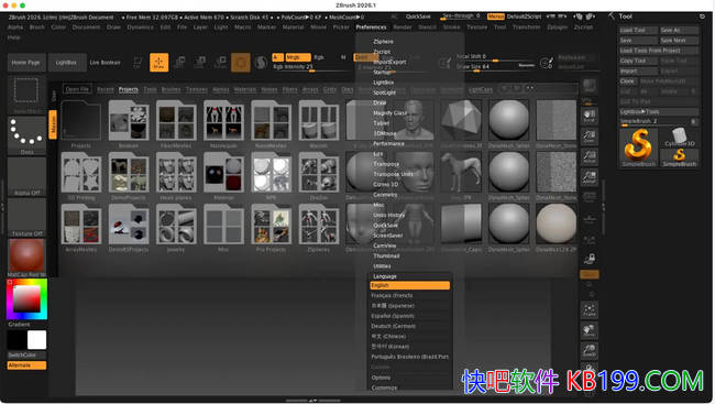 ZBrush 不仅是强大的雕刻工具,也是专业的 3D 绘画软件,它允许艺术家直接在 3D 模型表面进行绘画和纹理制作,无需复杂的 UV 展开和纹理映射流程。艺术家可以使用丰富的画笔和纹理库为模型添加颜色、纹理、光泽、凹凸等效果,实现从雕刻到纹理的一站式创作。