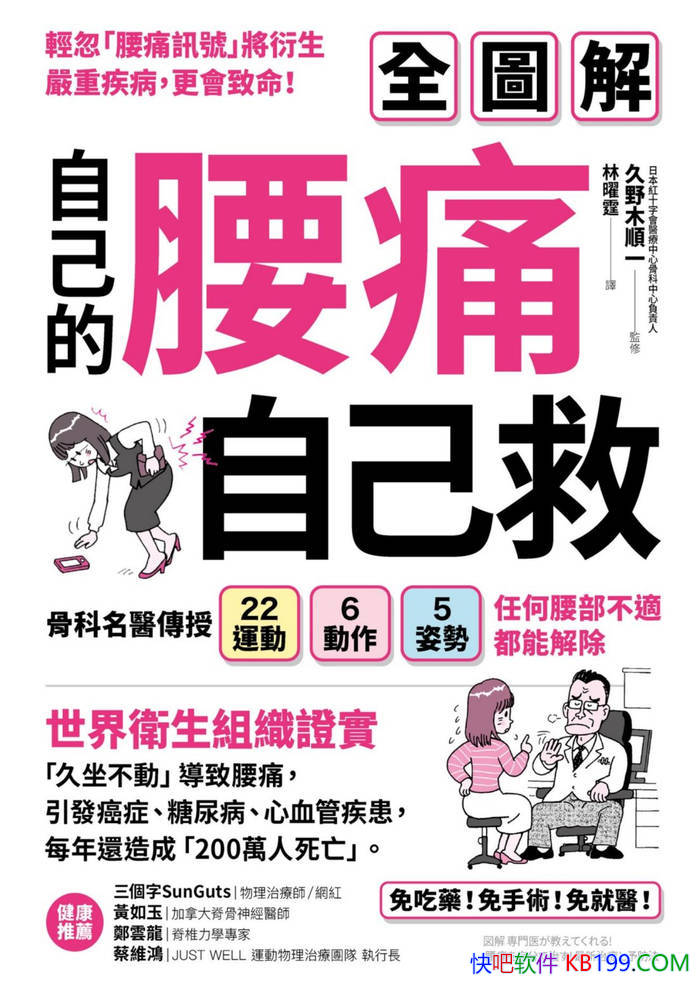 事实上,针对大多数的腰痛状况,“不需要急忙就医”。日本知名权威骨科医师久野木顺一特别传授“22种肌力运动”,并说明不同类型的腰痛患者,只要对症选择适合的运动,并且持续执行,就能“自己救腰痛”。