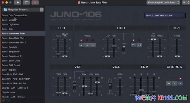 - 可通过MIDI接口实现对Roland Juno-106/MKS7合成器预设的创建、编辑、发送(调用/召回)、复制、重命名、删除全流程操作